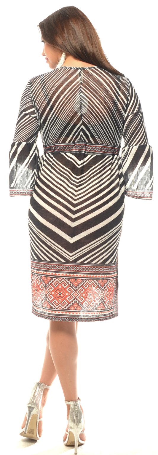Long Knit Dress with Embroidered trim