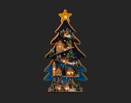 Led Laser Cut Xmas Tree W/Houses