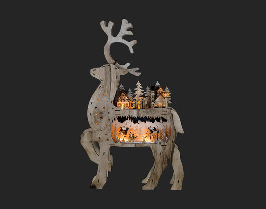Lasercut Deer with Village Scene