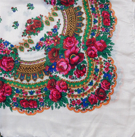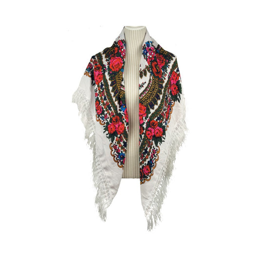 Large Floral Fringe Ukrainian Scarf/ Shawl