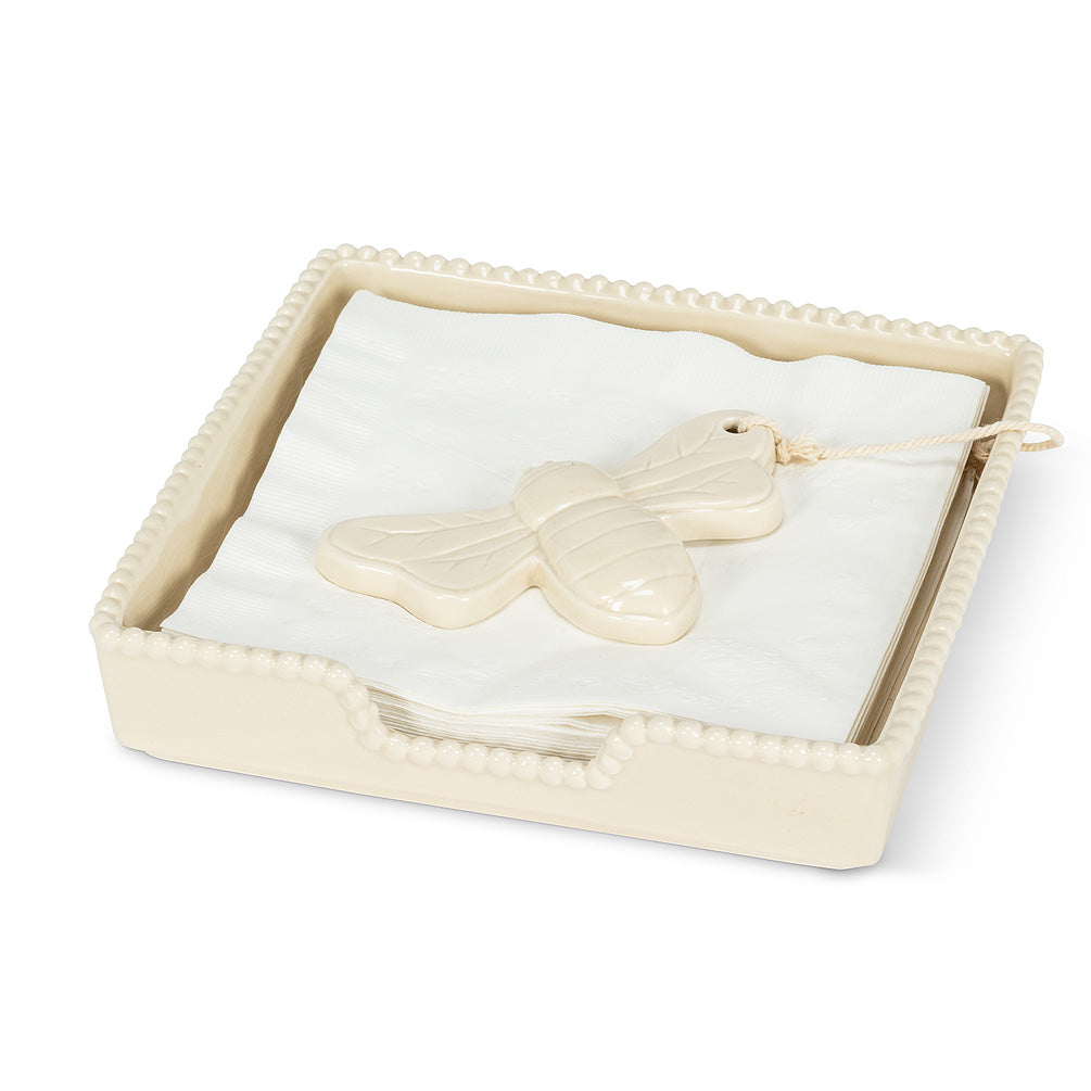 Let the good times fly – not your napkins – with this stylish and handy bee napkin holder. Made of ceramic with a charming bee silhouette weight to keep your napkins in place, this is one outdoor entertaining accessory you won’t want to do without. Large size luncheon napkin holder also available